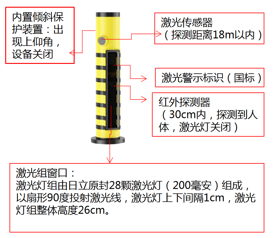 傾斜保護:設備發生傾斜、激光燈關閉