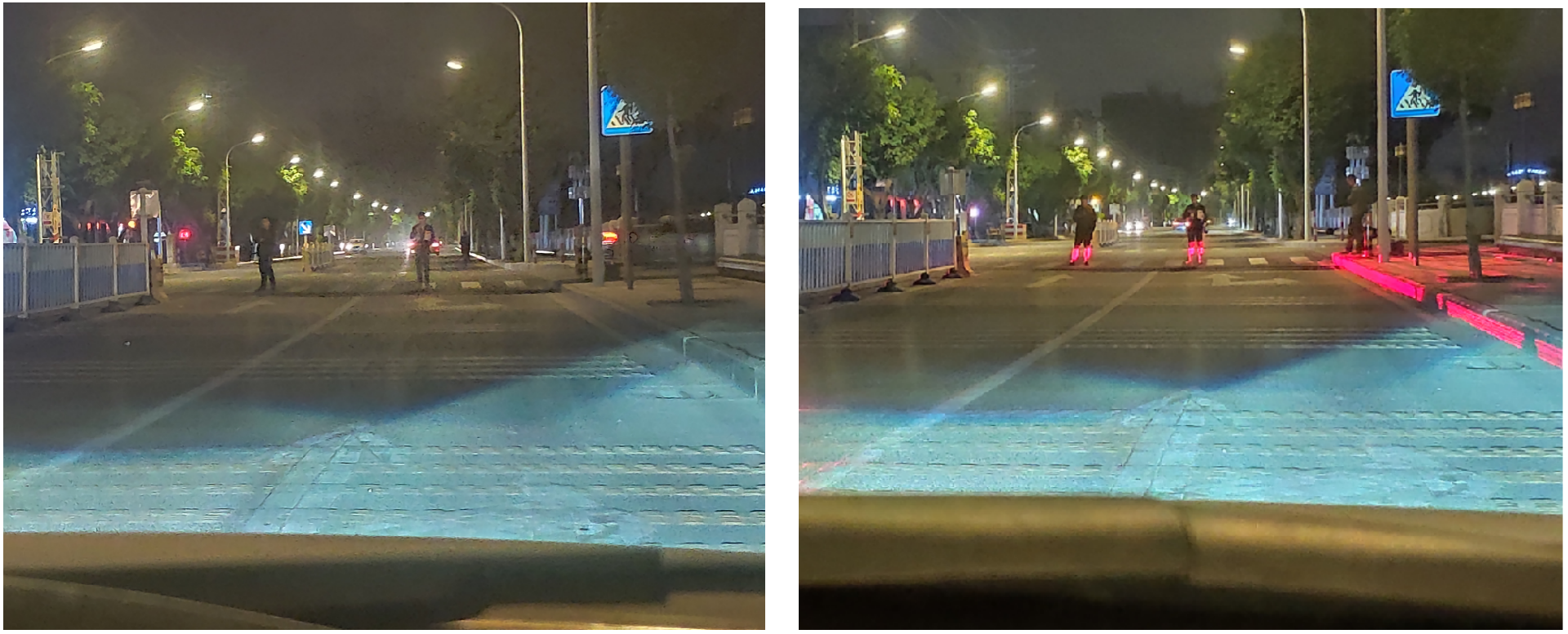 智能斑馬線預警系統解決方案主要應用于夜間沒有交通信號燈或夜間信號燈改為黃燈閃爍的人行橫道斑馬線兩端。通過激光探測,在行人進入斑馬線的瞬間,智能斑馬線預警裝置投射28條紅色激光線到行人小腿處,形成紅色區域投影,機動車駕駛員可以在照明不足、注意力不集中或視線受影響情況下(對面車輛遠光、雨霧天氣等),遠距離得到紅色警示和發現行人動態,并及時做出反應,從而減少交通意外的發生。