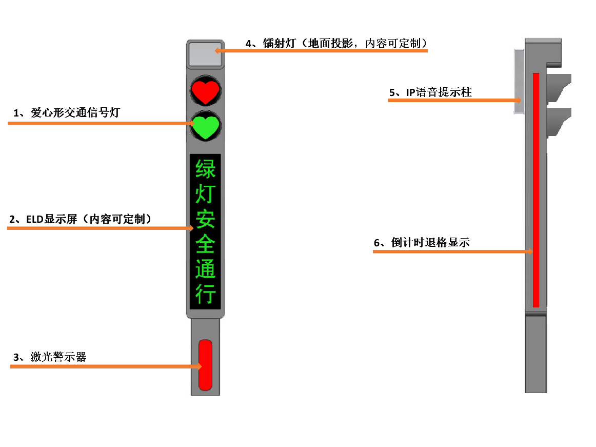 采用長壽命、高亮度LED,區(qū)別于常見人行信號(hào)燈形式,用愛心圖案讓交通管理更加人性化;