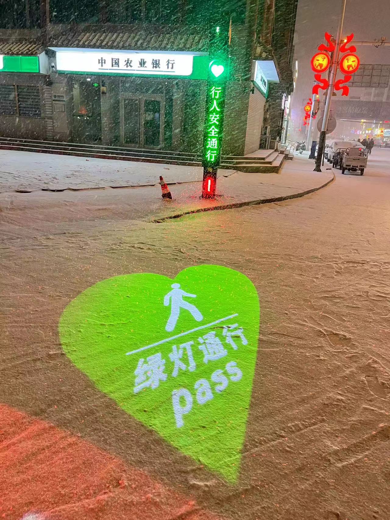 色溫8500K,跟隨愛心信號(hào)燈燈色。夜間時(shí),在人行橫道上投影出精美醒目的圖案,提醒行人遵守交通規(guī)則,文明出行。